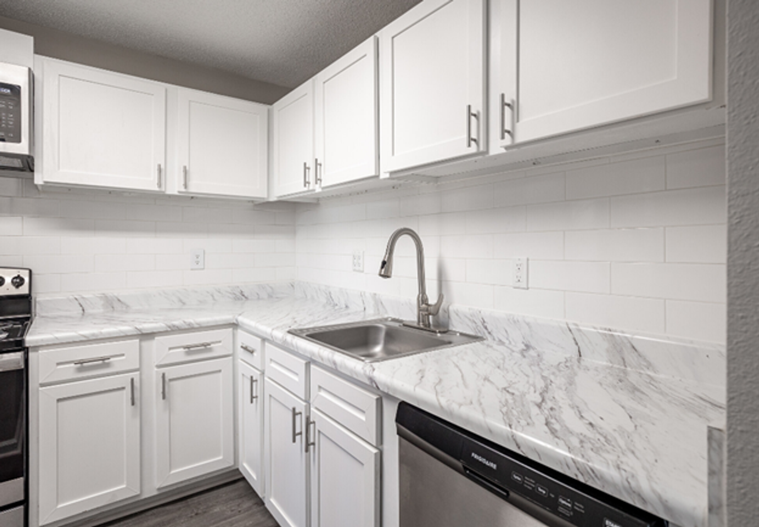 We have beautifully renovated 1, 2, and 3 bedroom apartment homes with faux marble style countertops, vinyl hardwood floors, brushed nickel fixtures, closet organizers, crown molding, fresh paint, new carpet, and much, much more!